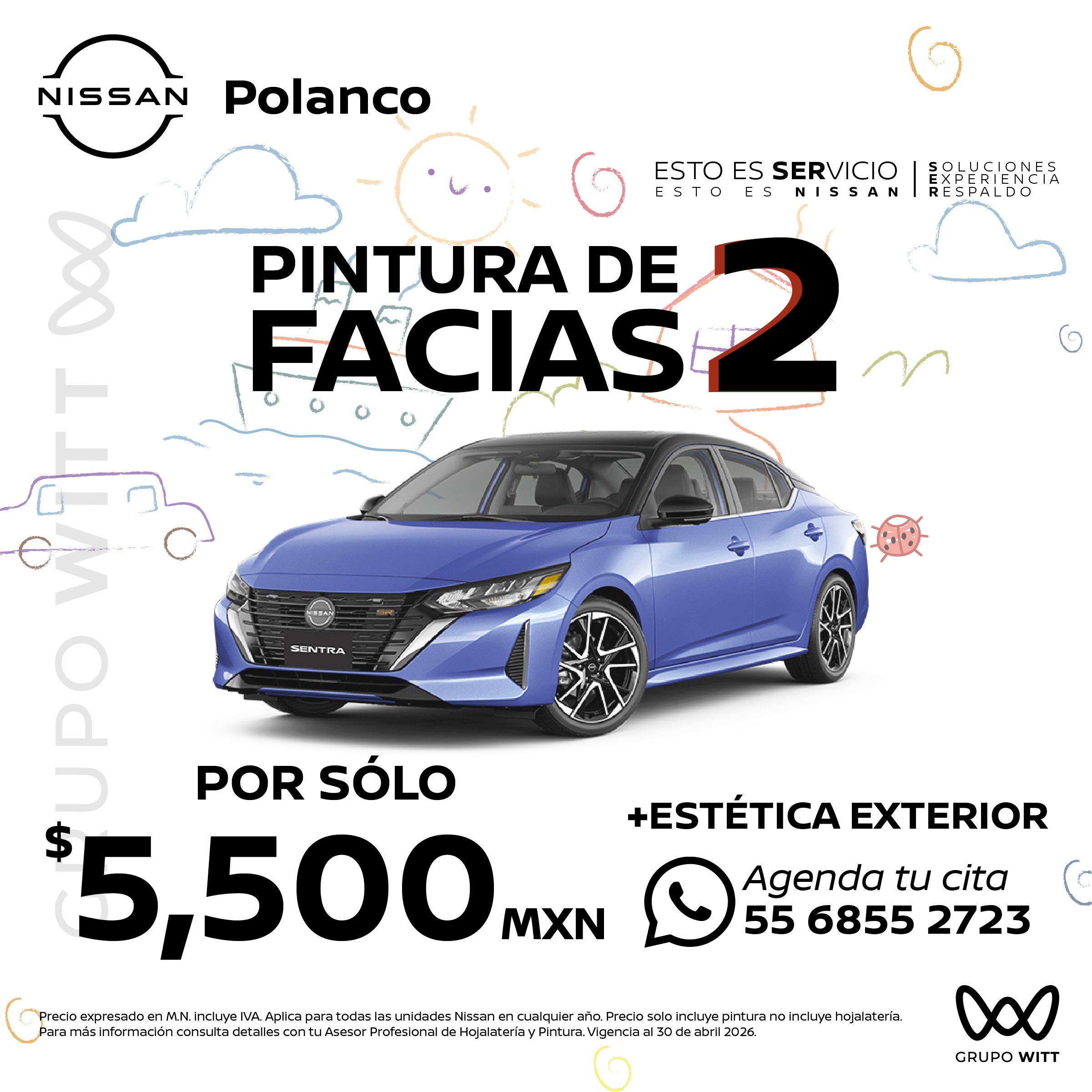 Precio expresado en M.N. incluye IVA. Aplica para todas las unidades Nissan en cualquier año. Precio solo incluye pintura no incluye hojalatería. Para más información consulta detalles con tu Asesor Profesional de Hojalatería y Pintura. Vigencia al 30 de abril 2026.