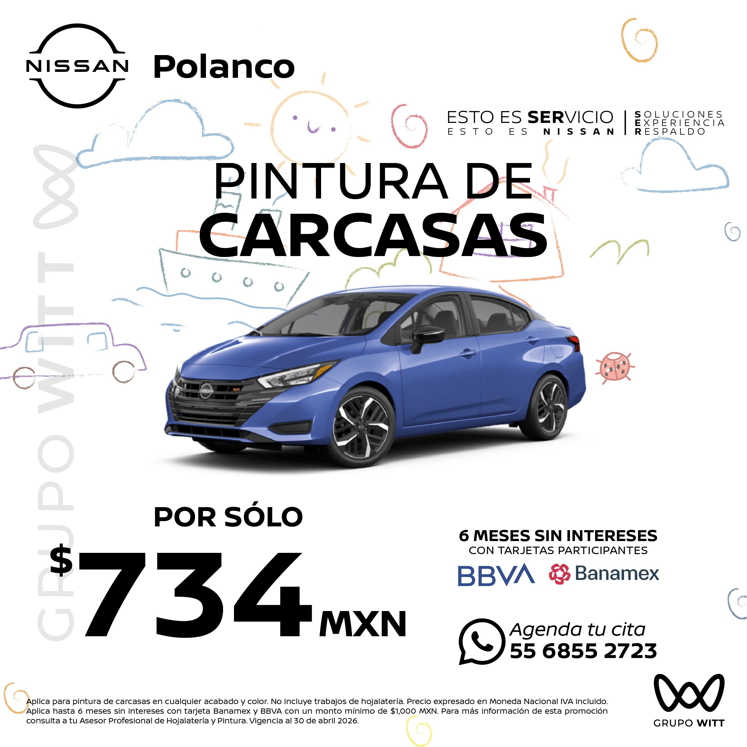 Aplica para pintura de carcasas en cualquier acabado y color. No incluye trabajos de hojalatería. Precio expresado en Moneda Nacional IVA incluido Aplica hasta 6 meses sin intereses con tarjeta Banamex y BBVA con un monto mínimo de $1,000 MXN. Para más información de esta promoción consulta a tu Asesor Profesional de Hojalatería y Pintura. Vigencia al 30 de abril 2026.